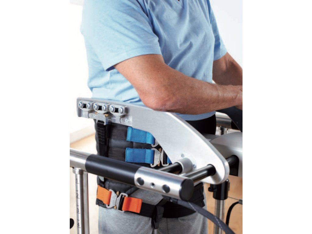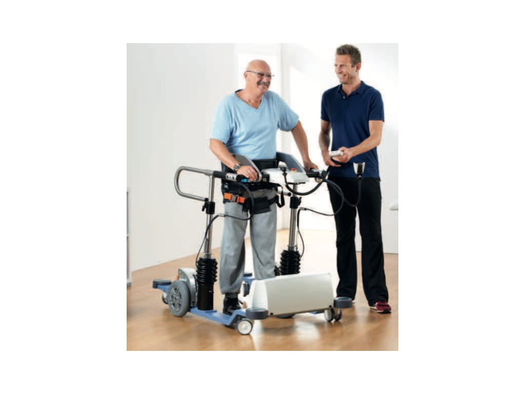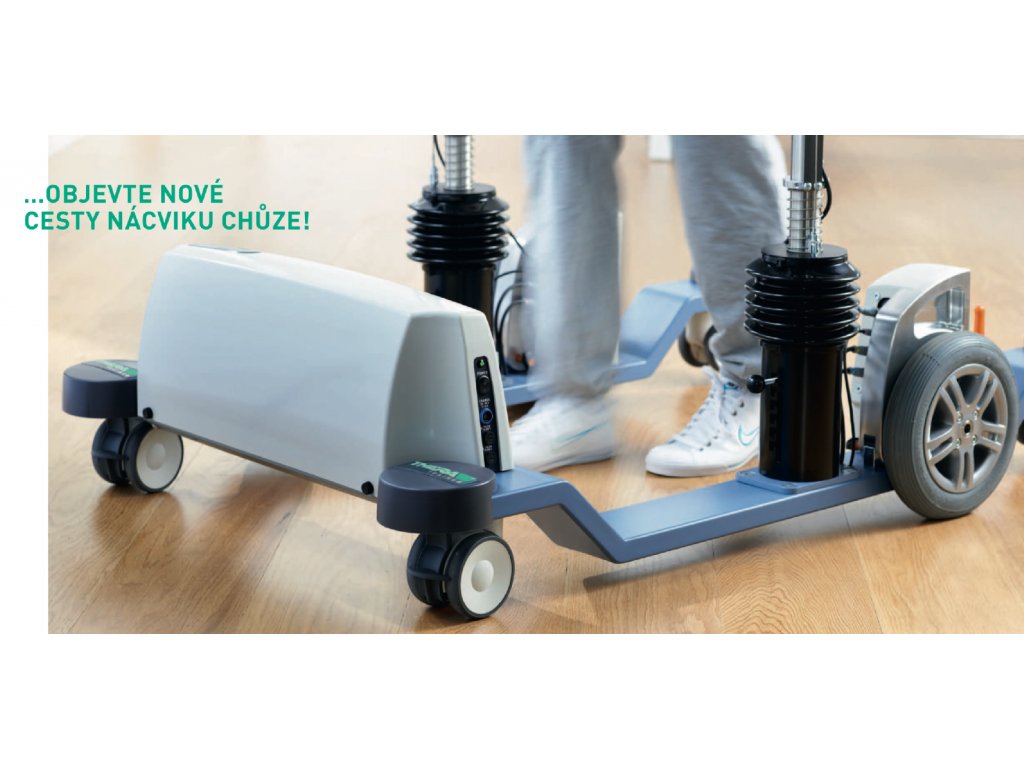 Na rehabilitačných chodníkoch s podporným systémom hornej časti tela je chôdza čiastočne ovplyvnená práve z dôvodu použitia podporného systé- mu. Cvičenie na chodníkoch je preto perfektný pre tých, ktorí sa snažia o prvé kroky v počiatočnej fáze rehabilitácie. Pacient by však mal začať chodiť čo najskôr po zemi. Pacienti väčšinou využívajú vysoké chodiace rámy s alebo bez sedátok. Ďalšou alternatívou je chôdza s chodítkami alebo dvoma palicami. U všetkých týchto pomôcok plní hornú časť tela a paže podpornú funkciu, ktorá bráni ich využitie v dynamickom procese chôdze. Dokonalé cvičenie by preto znamenalo nechať chodiť pacienta v miestnosti, kde neexistuje žiadne riziko pádu a zároveň je celé telo zapojených do procesu chôdze. THERA-Trainer e-go túto možnosť nácviku »naozajstné« chôdze ponúka tým, že je možné zatočiť doprava a doľava, chodiť "cikcak" a to všetko pri správnom držaní tela.