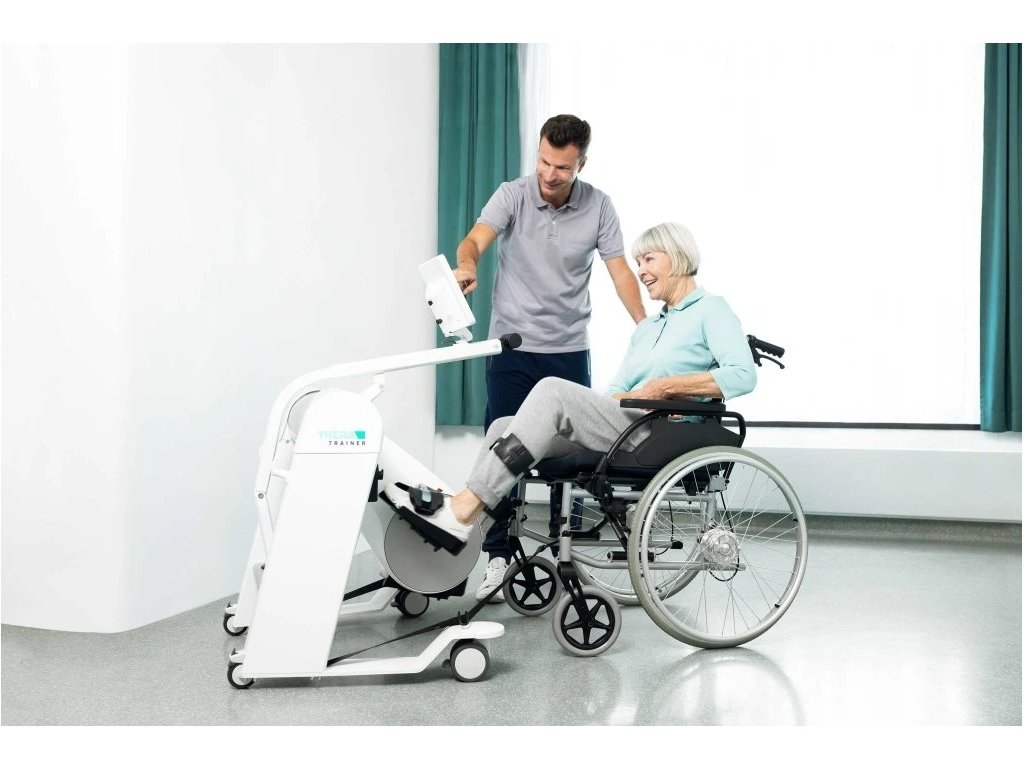 THERA-Trainer toro je unikátny rehabilitačný prístroj navrhnutý tak, aby pacienti mohli cvičit priamo zo svojho invalidného vozíka – bez prenášania, bez zbytočného stresu a s maximálnym pohodlím. Jeho bezbariérový design umožňuje ľahký "vjazd", stabilné ukotvenie a okamžité zahájenie tréningu. Vďaka tomu môžu aj pacienti s obmedzenou hybnosťou bezpečne a efektívne precvičovať dolné končatiny. Toro tak prináša do každodennej rehabilitácie väčšiu samostatnosť pacientov a výrazne uľahčuje prácu terapeutom.